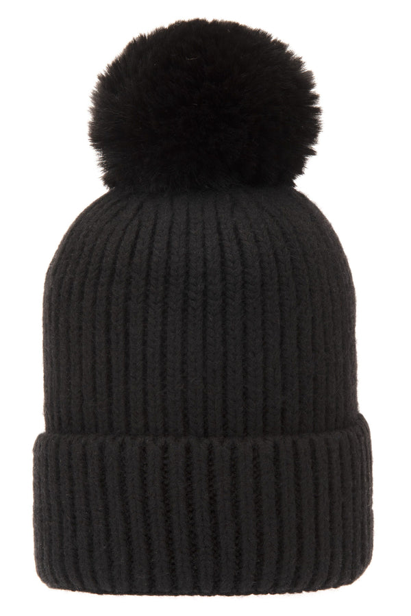Super Soft Chunky Cashmere Mix Hat with Pom Pom in Black