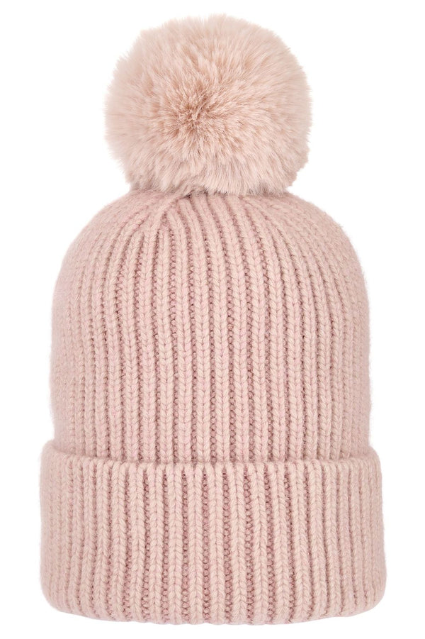 Super Soft Chunky Cashmere Hat with Pom Pom in Dusty Pink