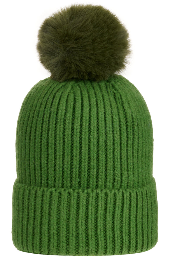 Super Soft Chunky Cashmere Mix Hat with Pom Pom in Forest Green