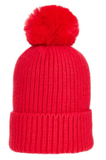 Super Soft Chunky Cashmere Mix Hat with Pom Pom in Red