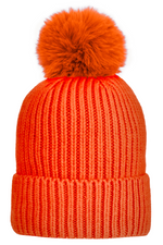 Super Soft Chunky Cashmere Mix Hat with Pom Pom in Orange